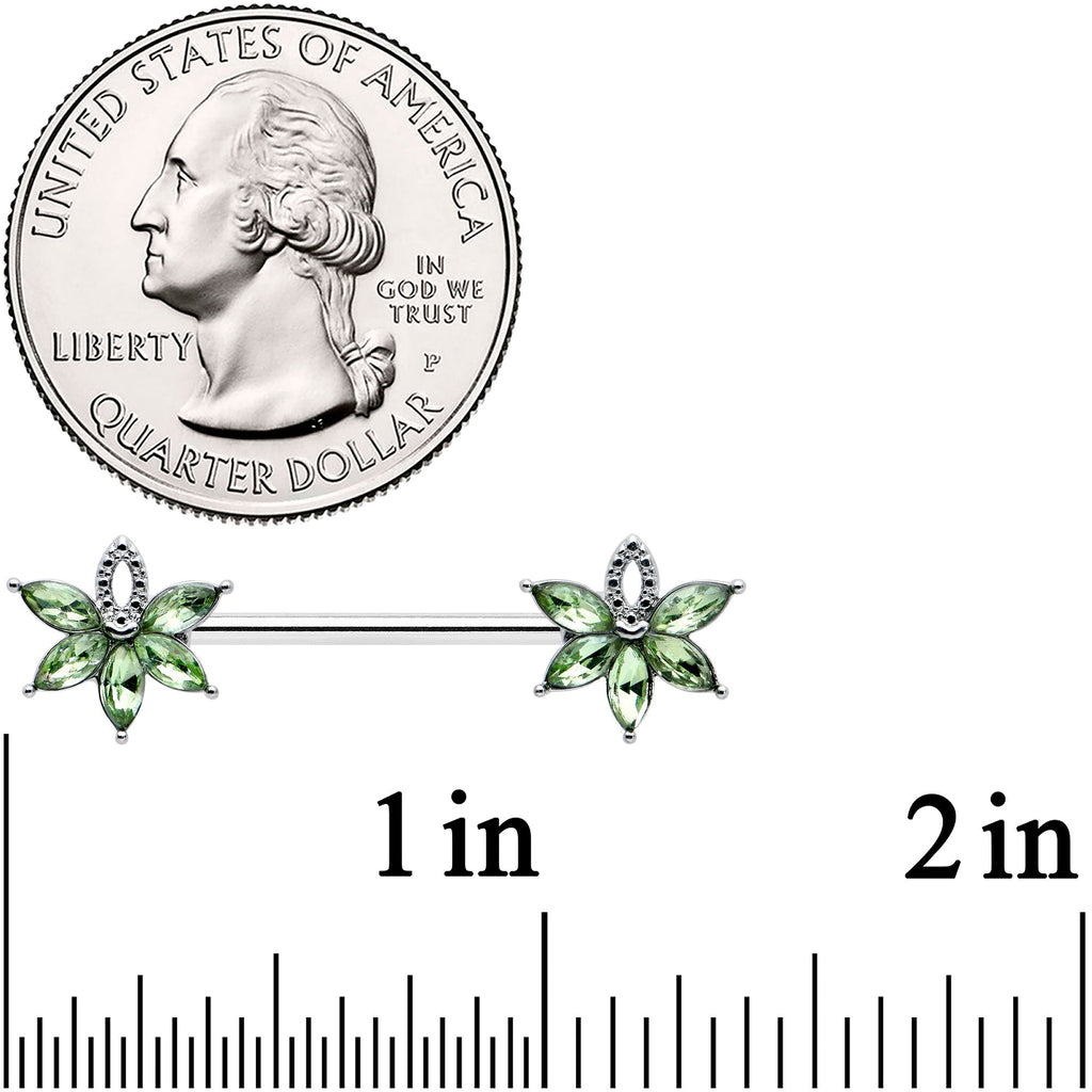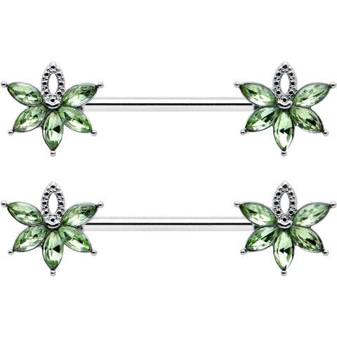 14 Gauge 9/16 Green Gem Texture Loopy Pot Leaf Barbell Nipple Ring Set