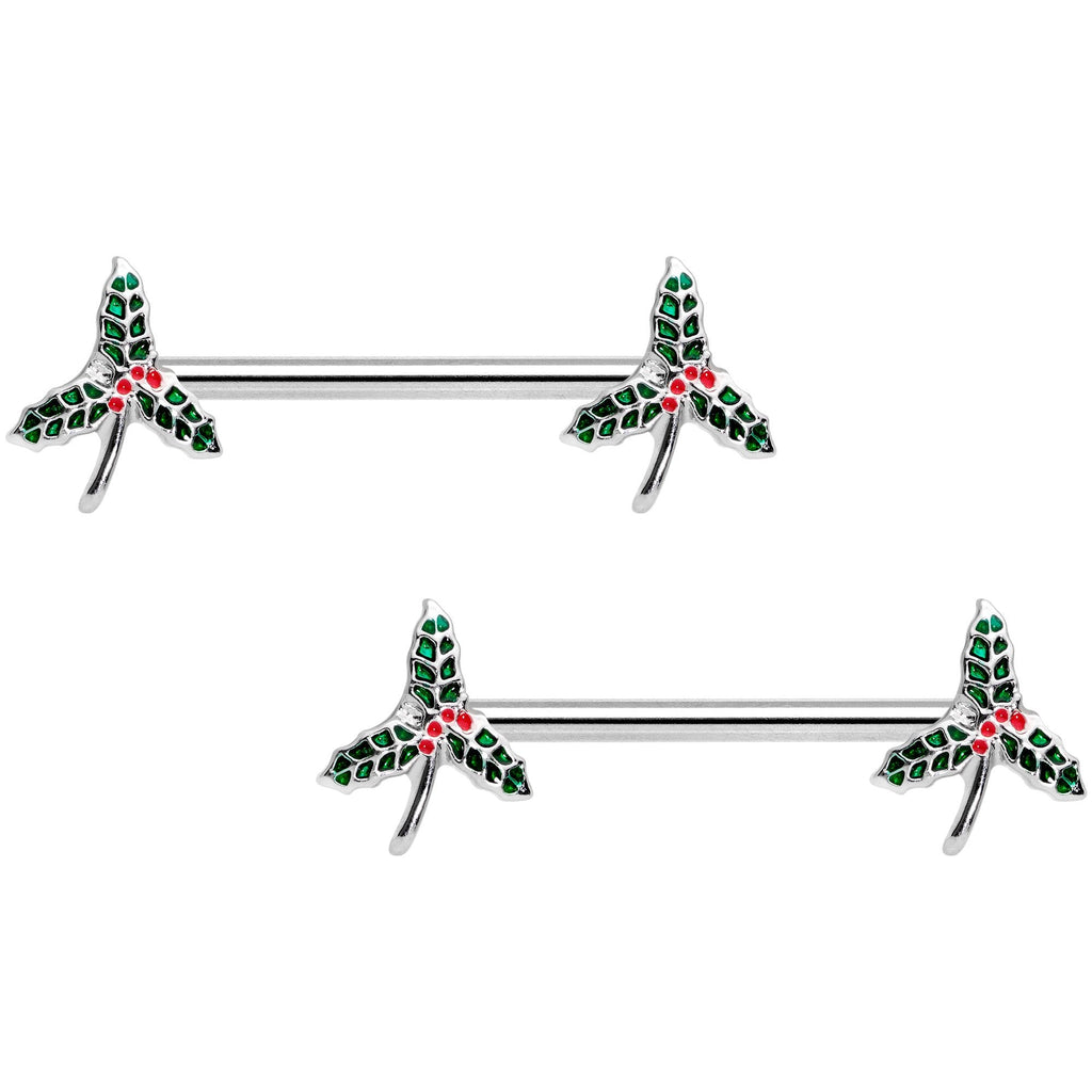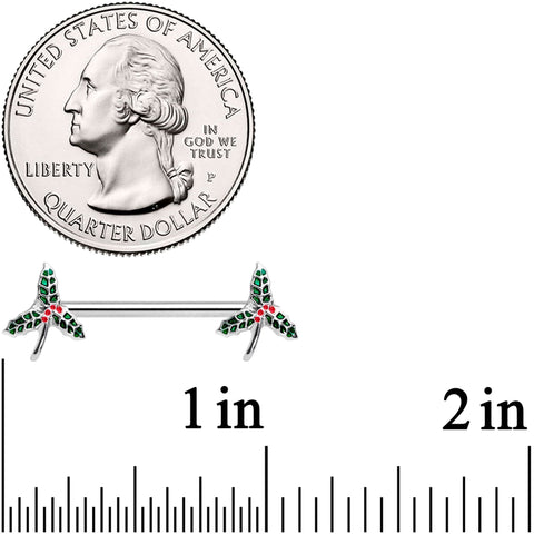 14G 9/16 Holiday Mistletoe Barbell Nipple Ring Set