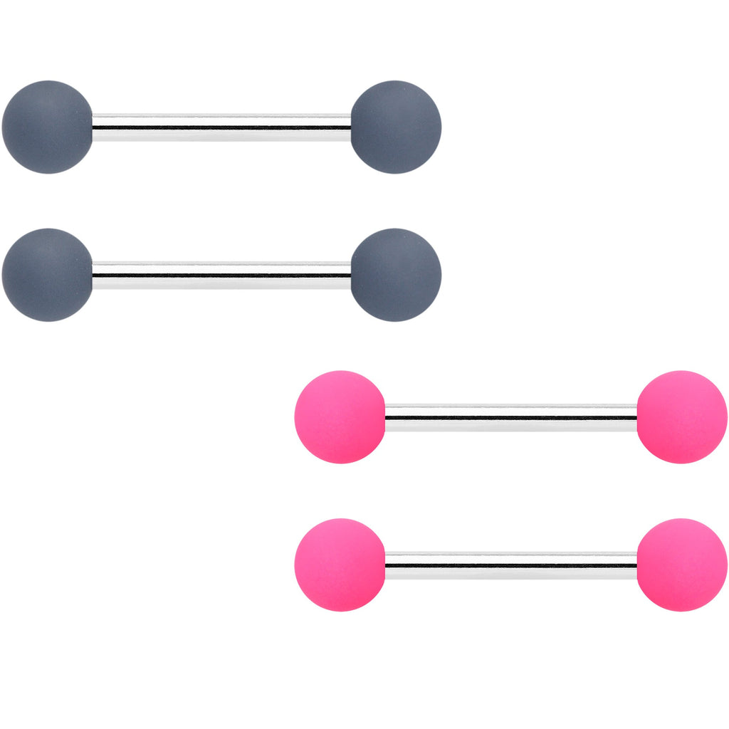 14 Gauge 9/16 Hot Pink Grey Matte Barbell Nipple Ring Set of 4