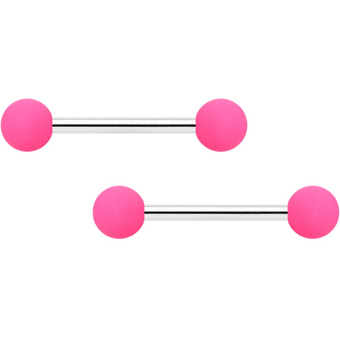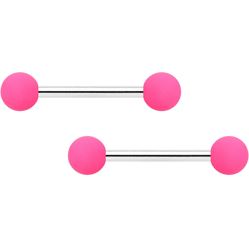 Simple style and powerful color combine to make comfortable and dainty nipple jewelry with these 14 gauge nipple rings! They're made with 14mm durable 316L surgical grade stainless steel straight barbells with 5mm ball ends. One pair has perfectly hot pink ends while the other pair is grey, and both have a subtly soft, matte finish to them. Keep it simple while still keeping it stylish with these colorful matte nipple rings! Sold as a set of four.Specifications