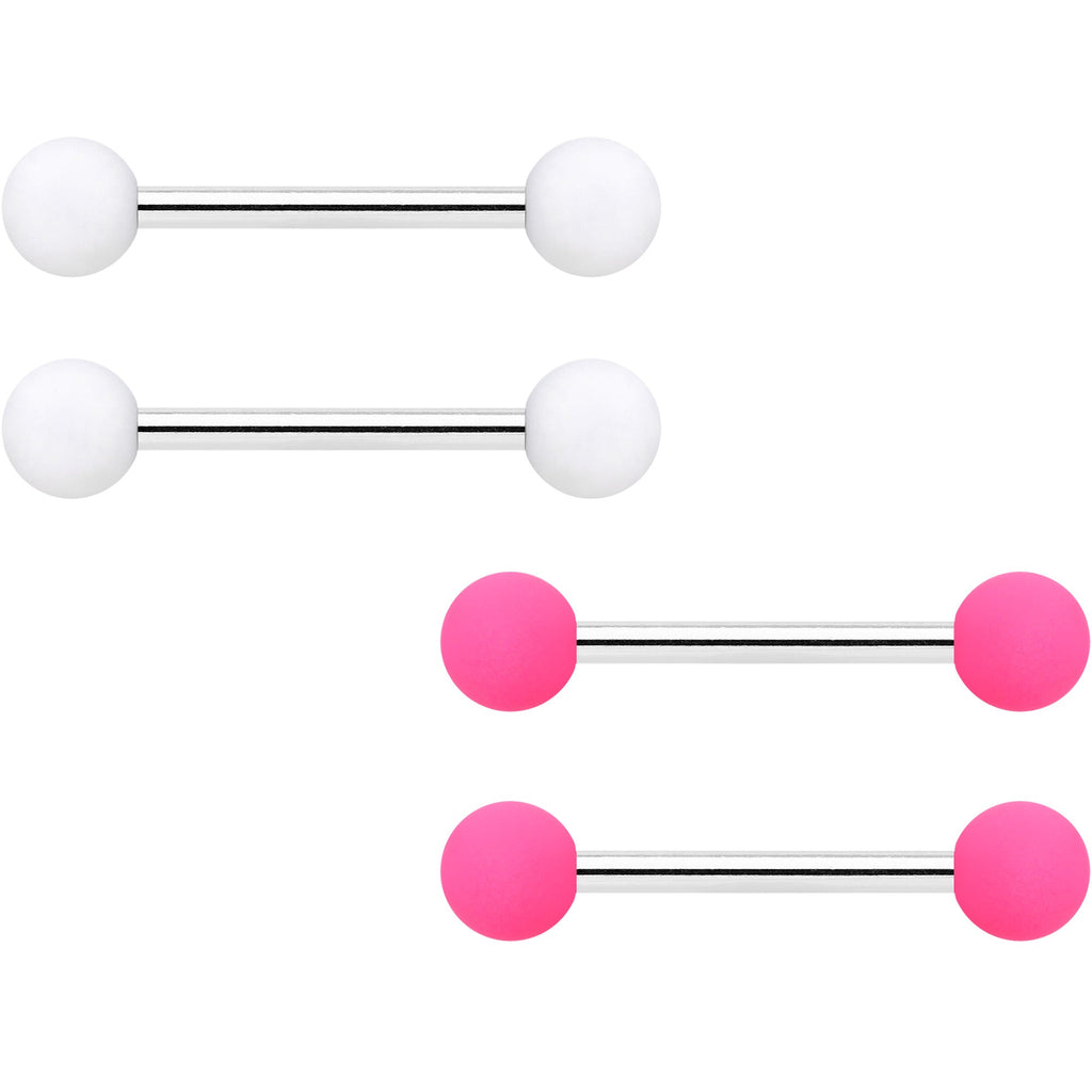14 Gauge 9/16 Hot Pink White Matte Barbell Nipple Ring Set of 4