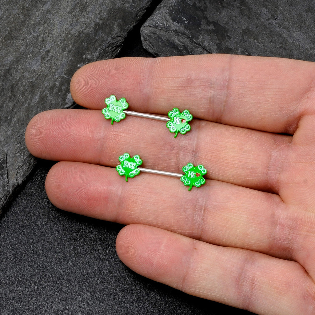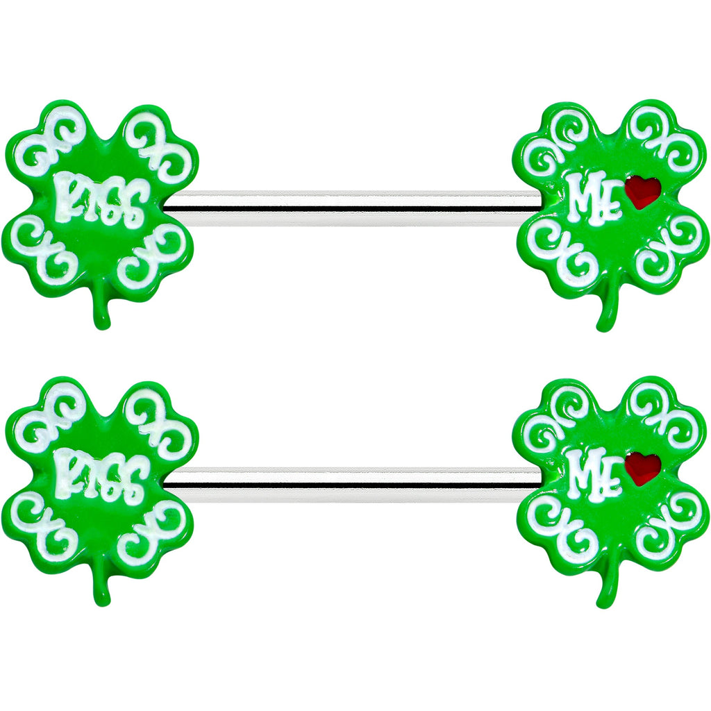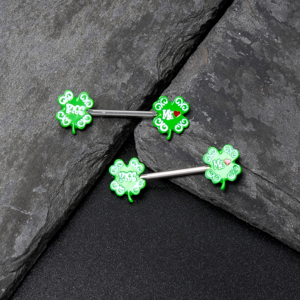 14 Gauge 9/16 Kiss Me Shamrock St Patricks Barbell Nipple Ring Set