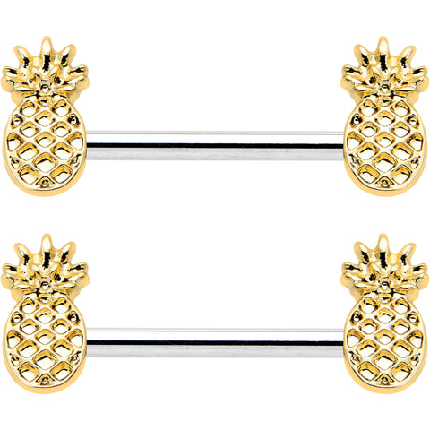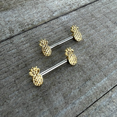 14G 9/16 Lacy Golden Pineapples Barbell Nipple Ring Set