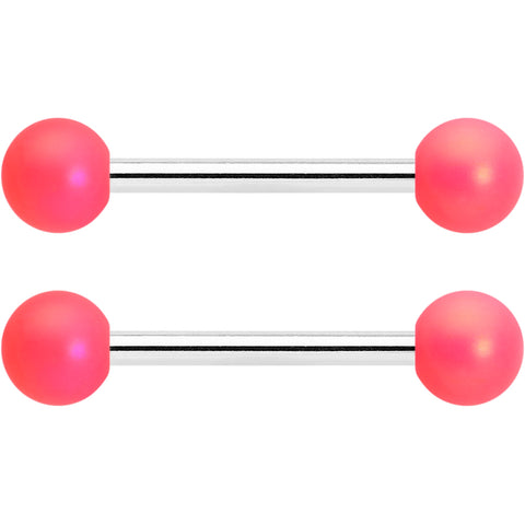 14 Gauge 9/16 Matte Pink Aurora Barbell Nipple Ring Set