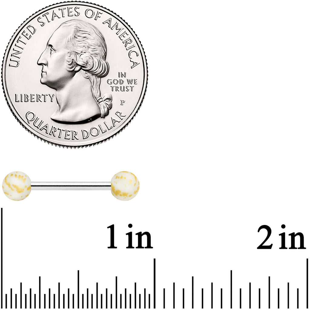 14 Gauge 9/16 Matte White Splatter Barbell Nipple Ring Set