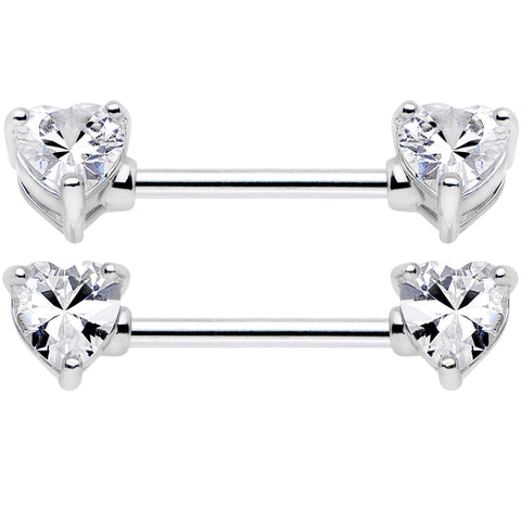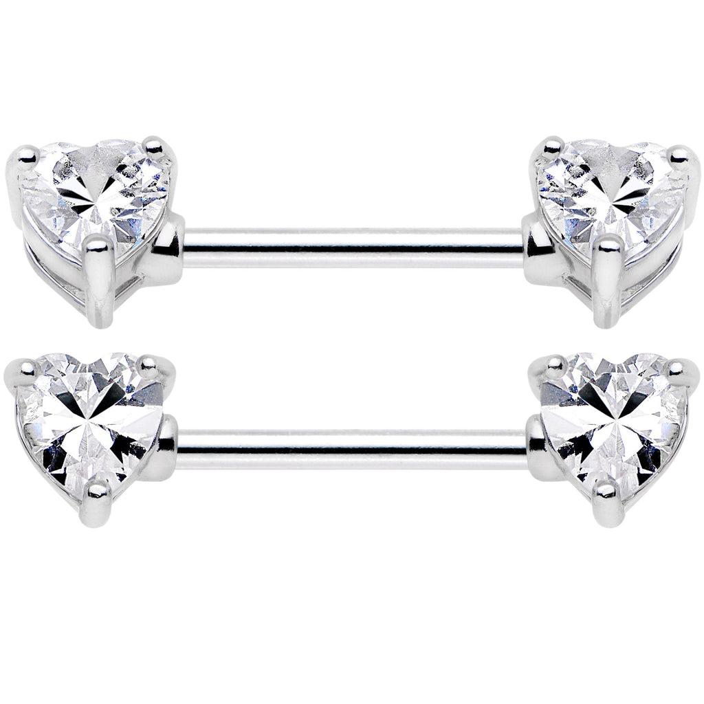 If you love options, then this is the piercing set for you! This nipple ring piercing pack comes with three different sets of Valentine's Day inspired colorful choices. The first is a durable 316L surgical grade stainless steel straight barbell with front facing, heart shaped pink gem ends. Next is a 316L surgical grade stainless steel straight barbell with front facing, heart shaped clear gem ends. The third is a straight barbell made with 316L surgical grade stainless steel and complete with front facing, heart shaped blue gem ends. All of the straight barbells are 14 gauge and measure 14mm in length. Sold as a set of six!
