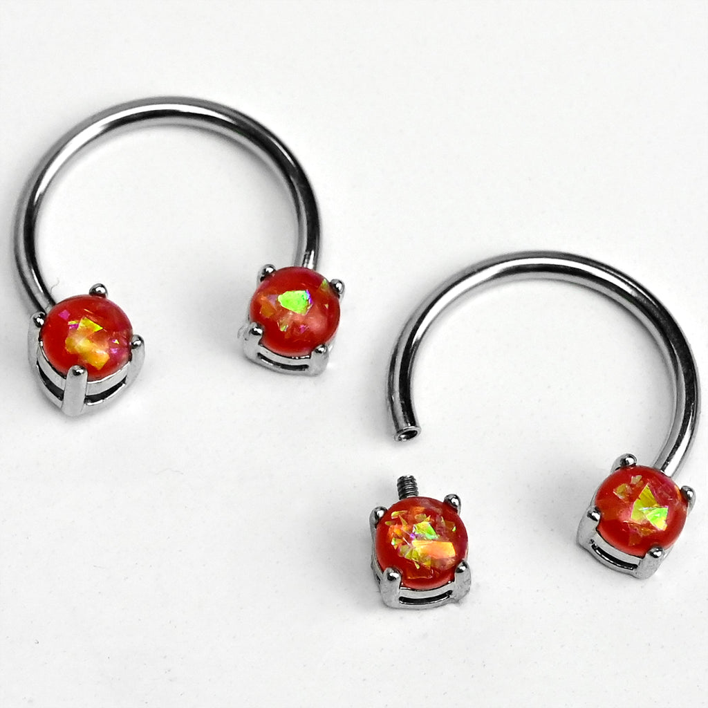 14G 9/16 Orange Faux Opal Internally Threaded Horseshoe Nipple Ring Set