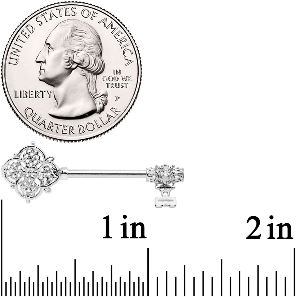 14G 9/16 Ornate Filigree Key Barbell Nipple Ring Set