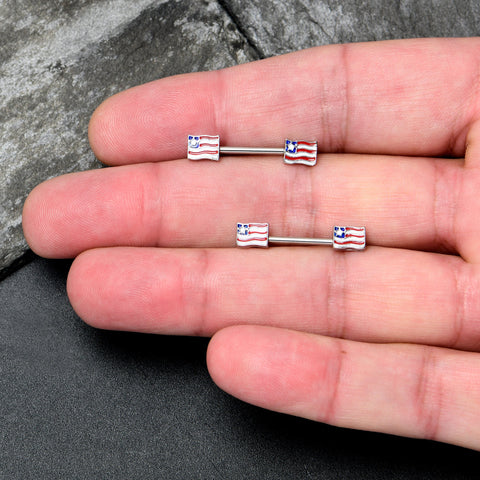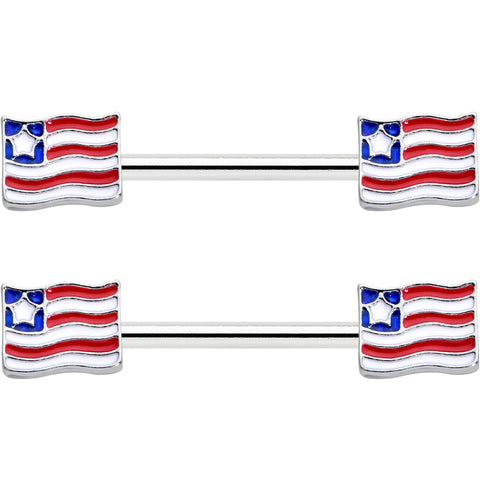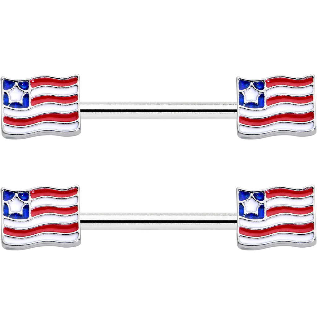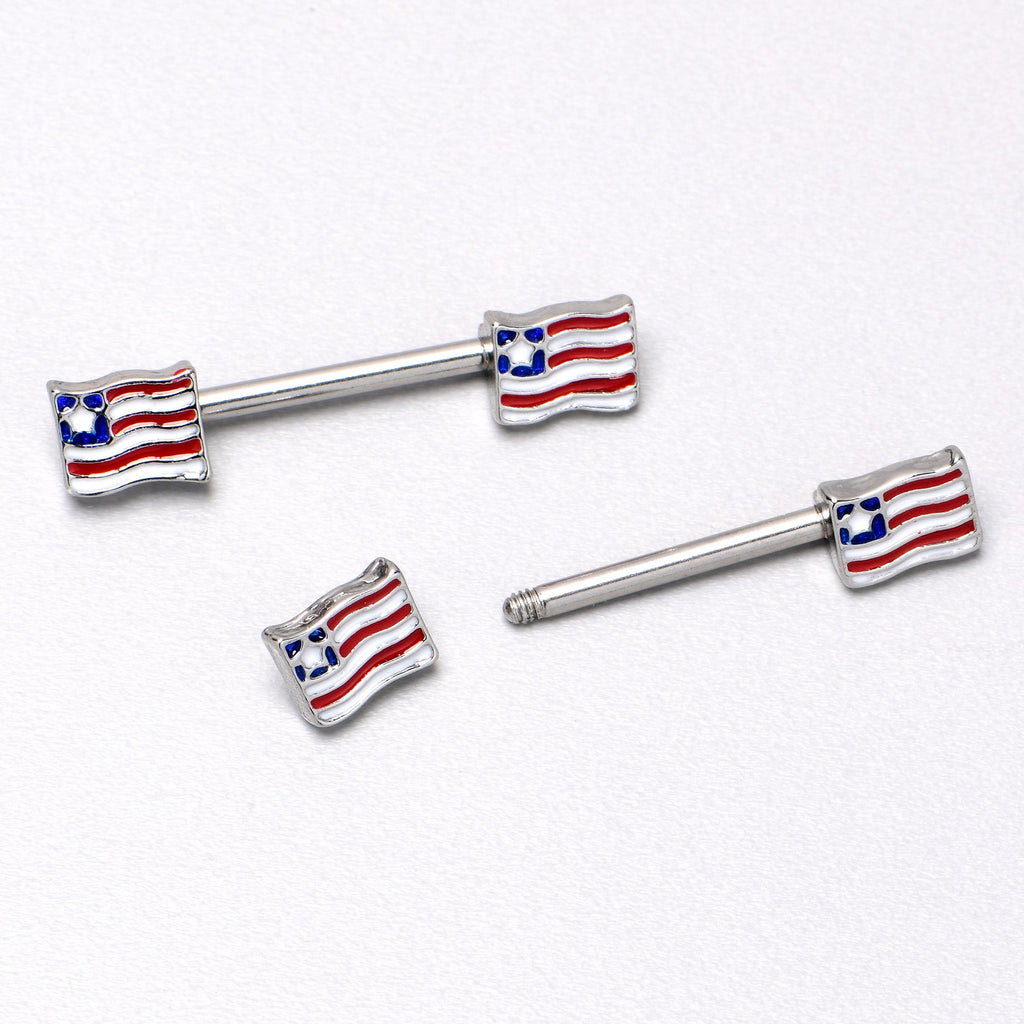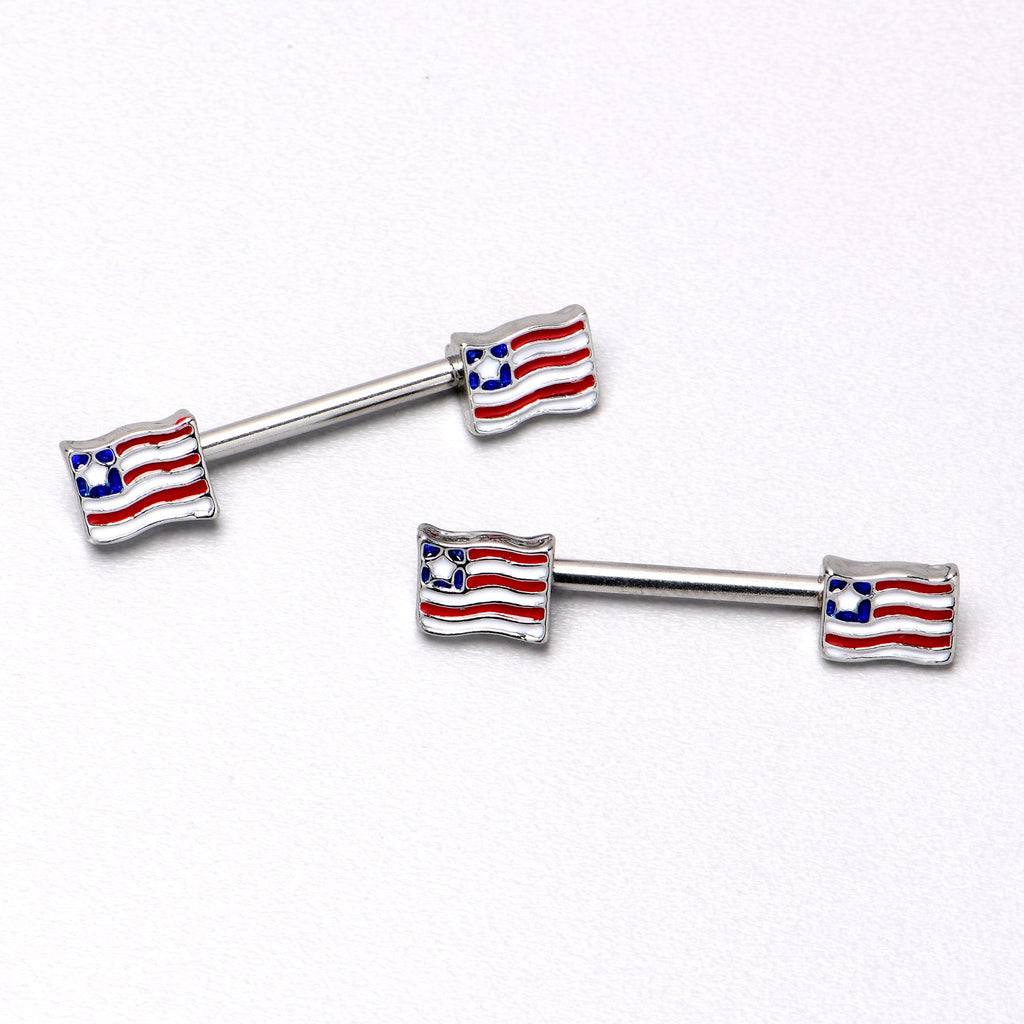 14 Gauge 9/16 Patriotic Flag Barbell Nipple Ring Set