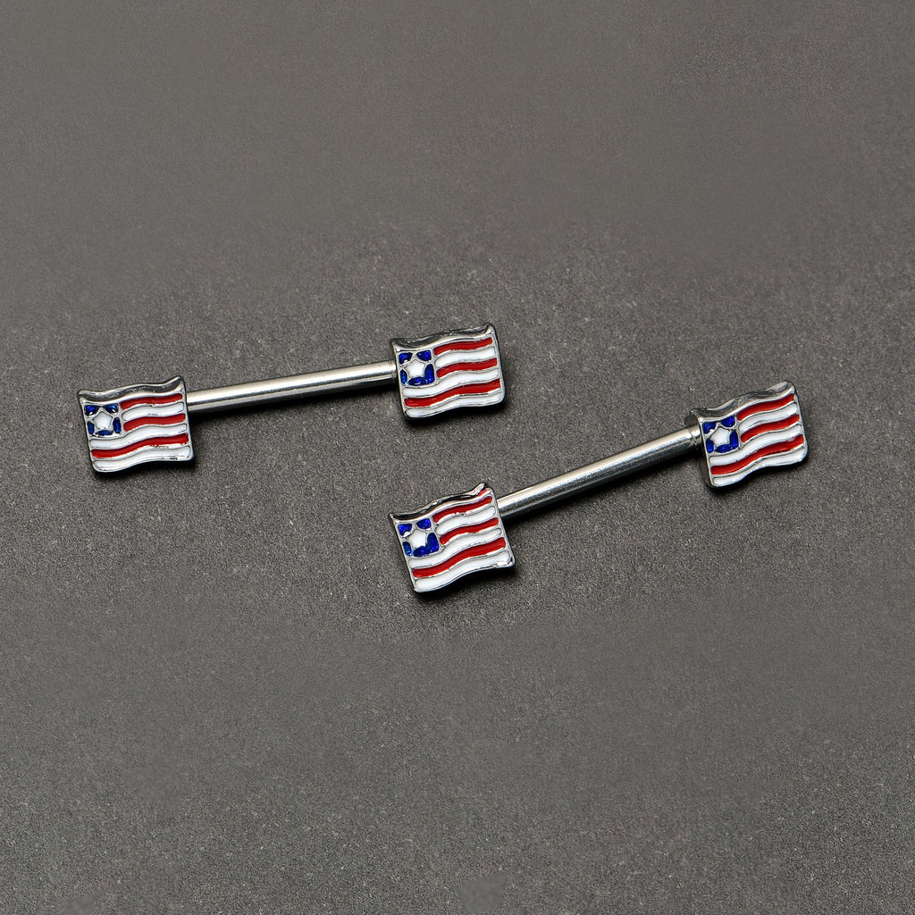 14G 9/16 Patriotic Flag Barbell Nipple Ring Set