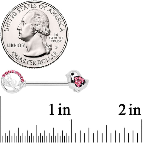 14 Gauge 9/16 Pink Gem Basket Chick Barbell Nipple Ring Set