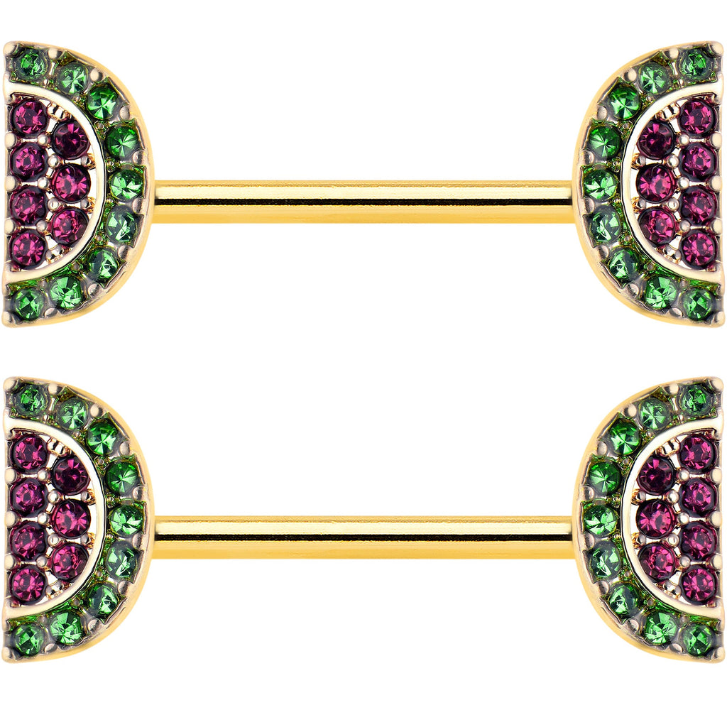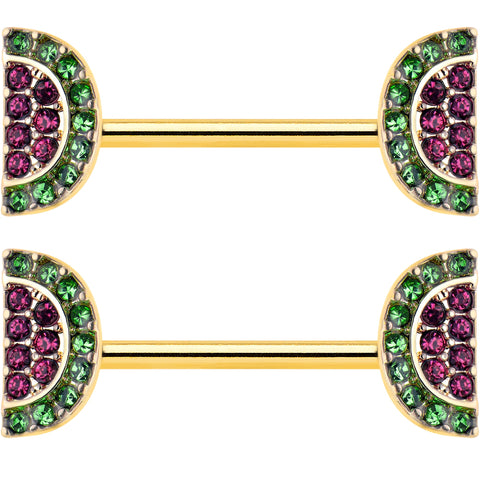 14 Gauge 9/16 Pink Gem Gold Hue Watermelon Yum Barbell Nipple Ring Set