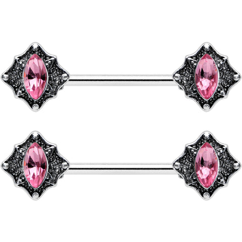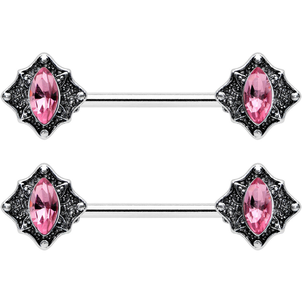 14G 9/16 Pink Gem Rhombus Retro Barbell Nipple Ring Set