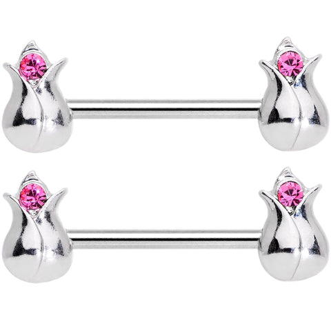 14 Gauge 9/16" Pink Gem Tulip Flower Barbell Nipple Ring Set