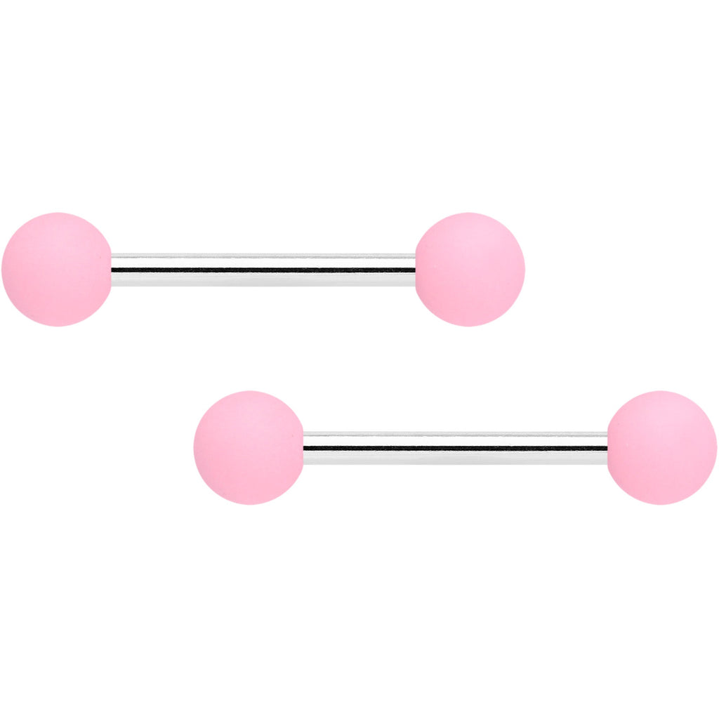 Simple style and soft, sweet color both combine to make comfortable and dainty nipple jewelry with these 14 gauge nipple rings! They're made with 14mm durable 316L surgical grade stainless steel straight barbells with 5mm ball ends. One pair has pale pink ends while the other pair is sweet peach, and both have a subtly soft, matte finish to them. Keep it simple while still keeping it stylish with these sweet and sassy nipple rings! Sold as a set of four.