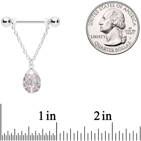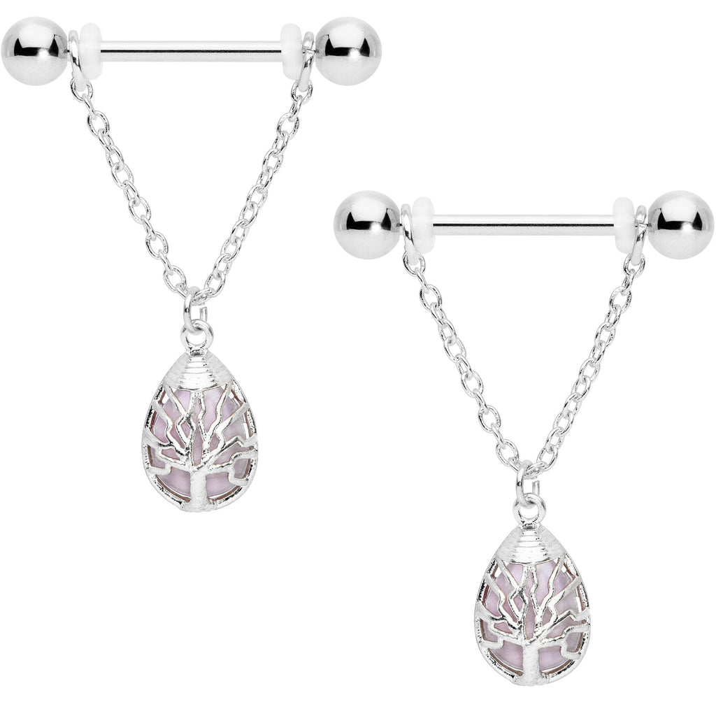 For Arbor Day or any day, get your tree on with this 14 gauge nipple jewelry! It's made with 14mm durable 316L surgical grade stainless steel straight barbells with 5mm ball ends. Dangling from each one is a length of the chain that supports a rose quartz drop. Wrapped around them are tree charms, for a look that has both depth and style. Let your look branch out into some elegant, arboreal style with these tree-themed nipple rings! Sold as a set of two.Specifications