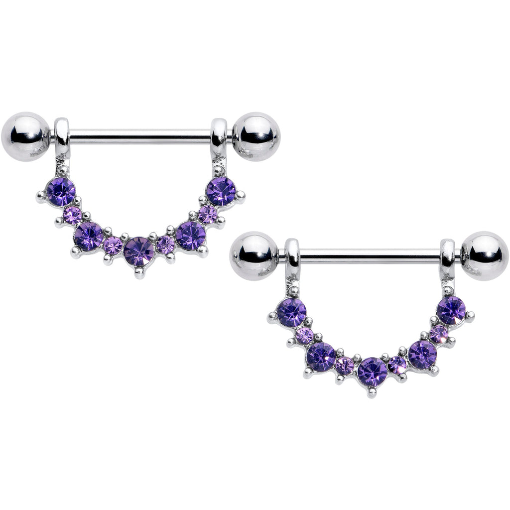 14 Gauge 9/16 Purple CZ Gem February Birthstone Dangle Nipple Shield Set