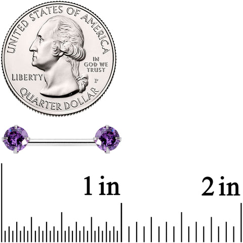 14G 9/16 Purple CZ Gem Threadless Barbell Nipple Ring Set