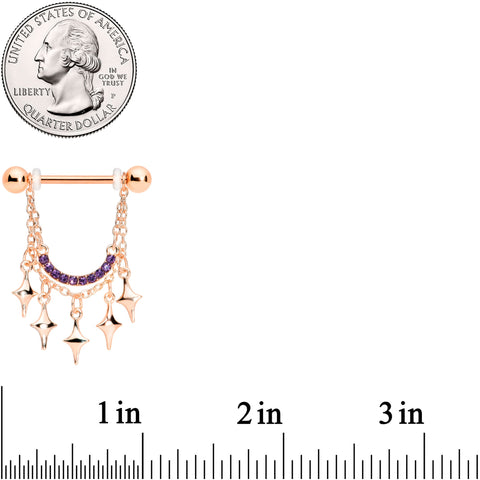 14 Gauge 9/16 Purple Gem Rose Gold Tone Drama Dangle Nipple Ring Set