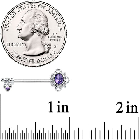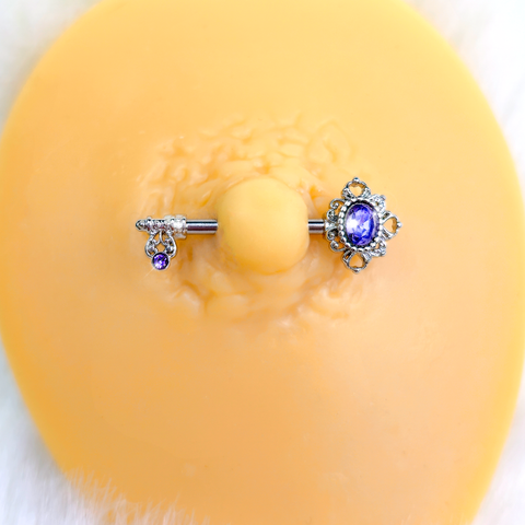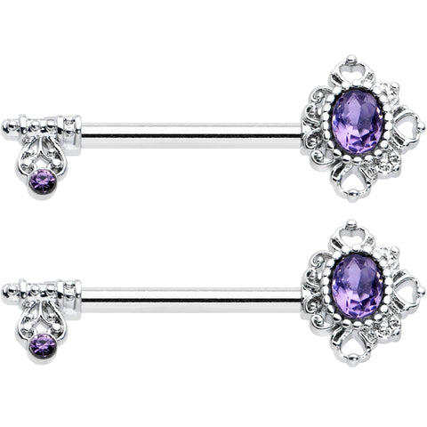 14 Gauge 9/16 Purple Gem Unlock My Heart Key Barbell Nipple Ring Set