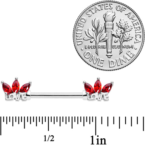 Show the world this Valentine's Day that love is king...or queen...with this 14 gauge nipple jewelry! It's made with 14mm durable 316L surgical grade stainless steel straight barbells. The end of each one features a trio of red gems, fanned out like a for an airy appearance. They sit atop the word "love" like a royal crown. Spread love when you wear love with these elegant and timely nipple piercing rings! Sold as a set of two.Specifications