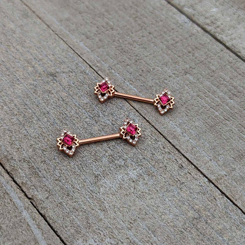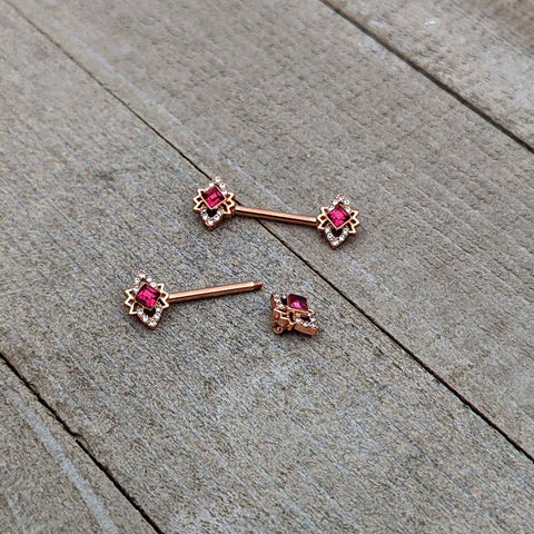 14 Gauge 9/16 Red Gem Rosy Tone Octogram Star Barbell Nipple Ring Set
