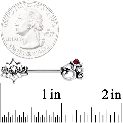 14 Gauge 9/16 State of Zen Yoga Om Lotus Flower Nipple Ring Set