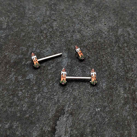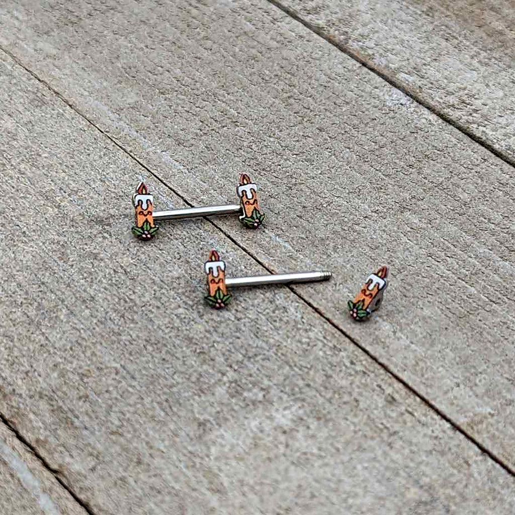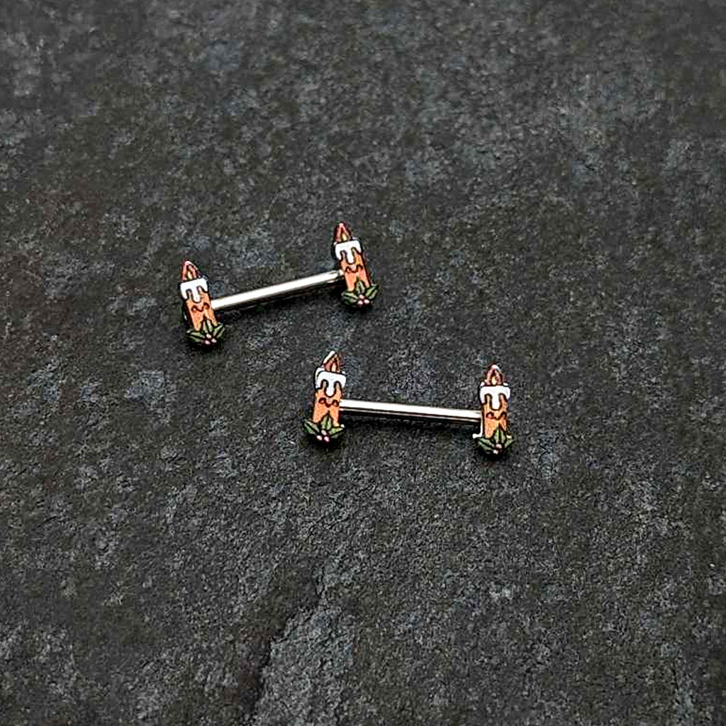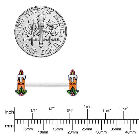 14 Gauge 9/16 Sweet Holiday Christmas Candle Barbell Nipple Ring Set
