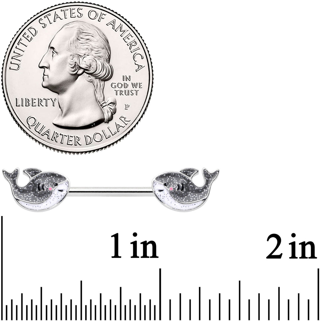 14 Gauge 9/16 Sweet Smiling Whale Barbell Nipple Ring Set
