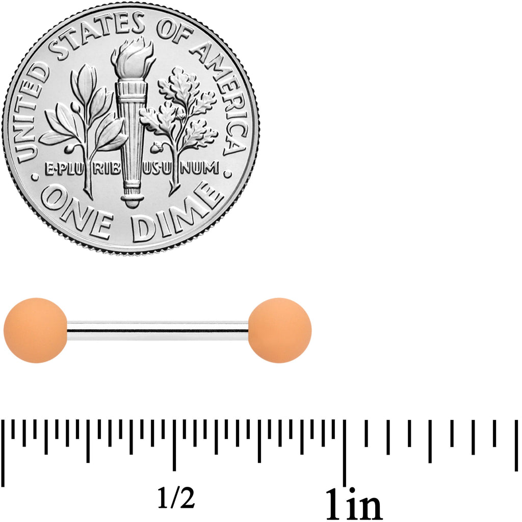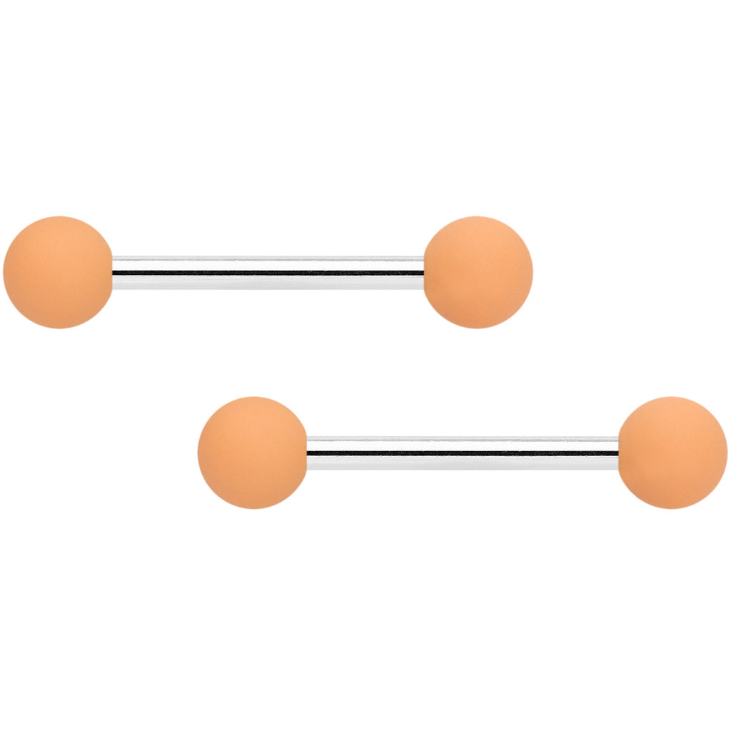 Simple style and toasty light tan color combine to make comfortable and dainty nipple jewelry with these 14 gauge nipple rings! They're made with 14mm durable 316L surgical grade stainless steel straight barbells. The 5mm ball ends are warm tan in color with a subtly soft, matte finish to them. Keep it simple while still keeping it stylish with these lovely, light tan nipple rings! Sold as a set of two.Specifications
