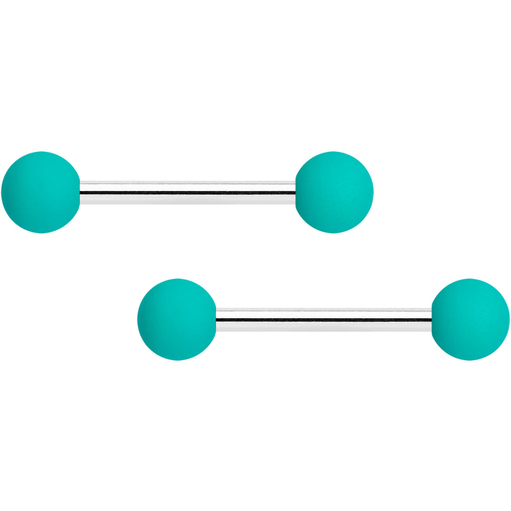 14 Gauge 9/16 Teal Black Matte Barbell Nipple Ring Set of 4