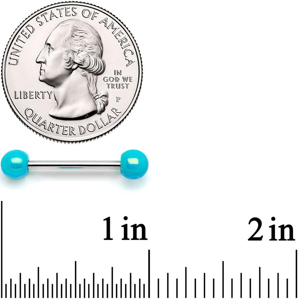 Hypoallergenic jewelry for sensitive skin.14 Gauge 9/16" Teal Pearlescent Acrylic Barbell Nipple Ring Set