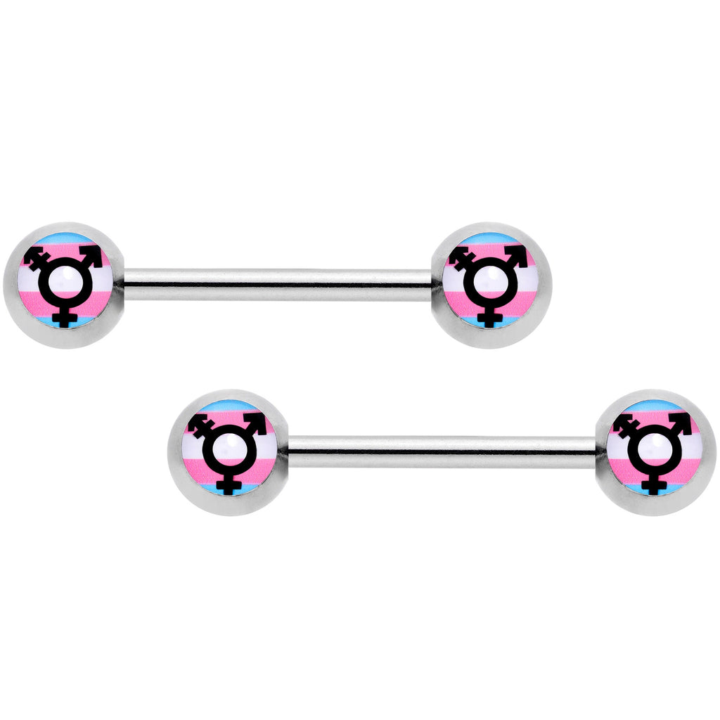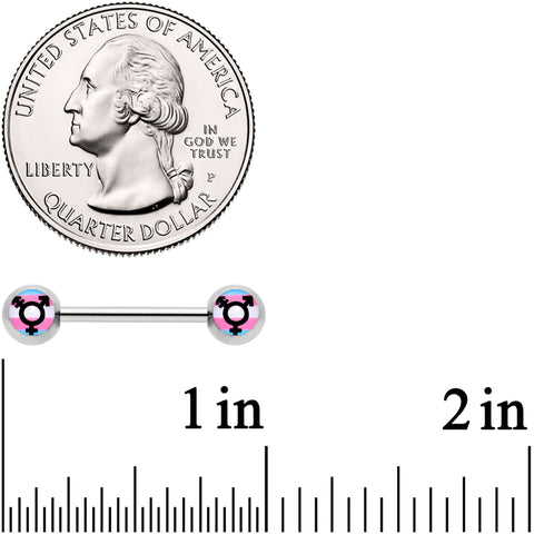 14 Gauge 9/16 Transgender Pride Logo Barbell Nipple Ring Set