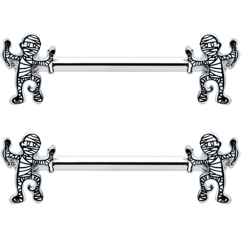 14G 9/16 Two Tone Halloween Mummy Barbell Nipple Ring Set