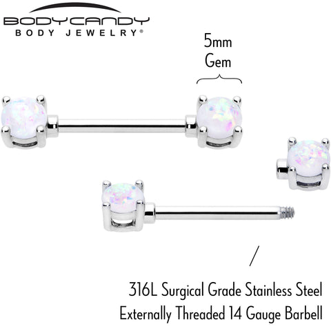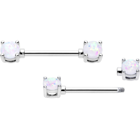 14G 9/16 White Faux Opal October Birthstone Nipple Ring Set