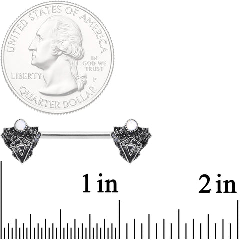 14 Gauge 9/16" White Faux Opal Retro Triangle Barbell Nipple Ring Set