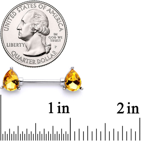 14 Gauge 9/16" Yellow Gem Teardrop Barbell Nipple Ring Set