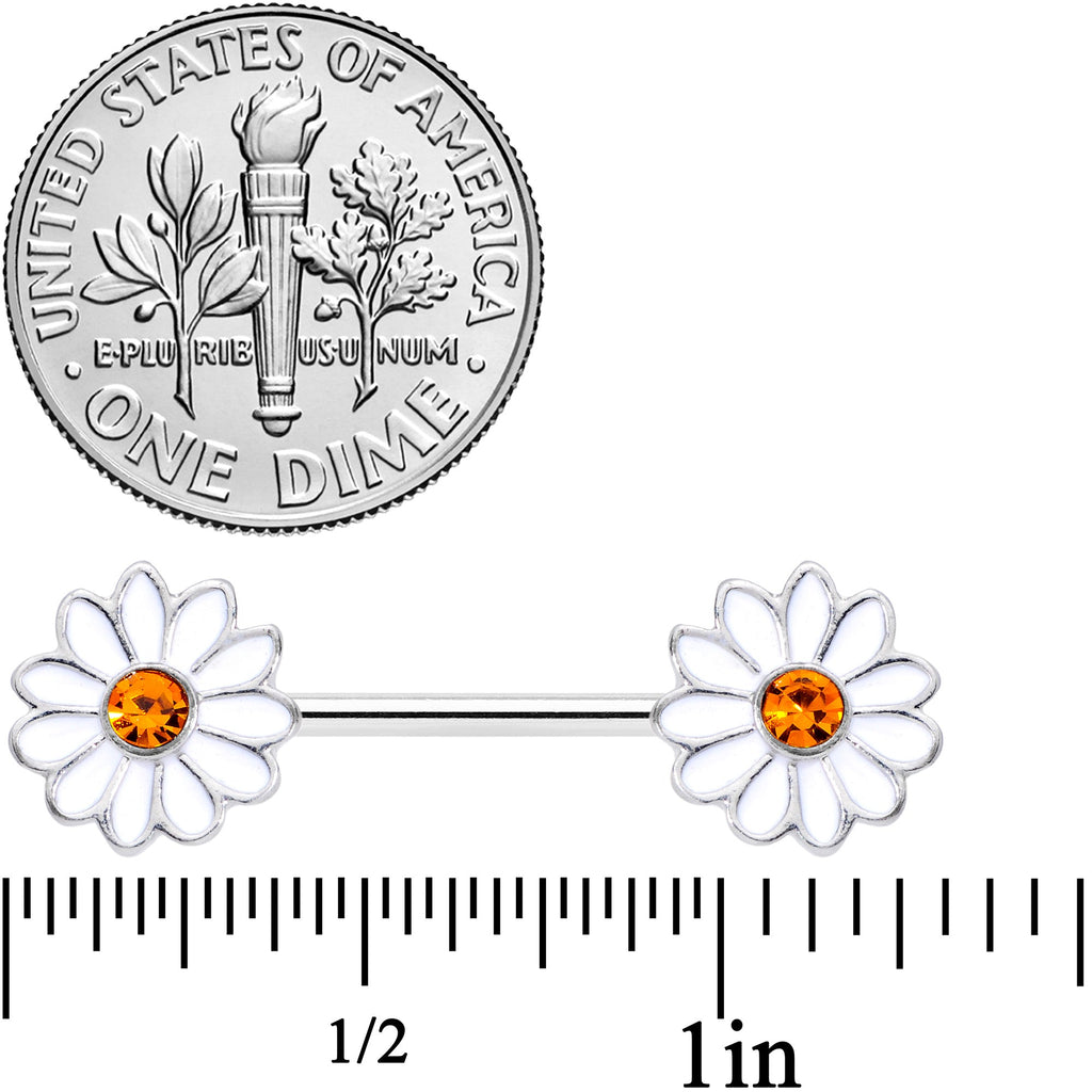 14 Gauge 9/16 Yellow Gem White Daisy Flower Hippie Nipple Ring Set