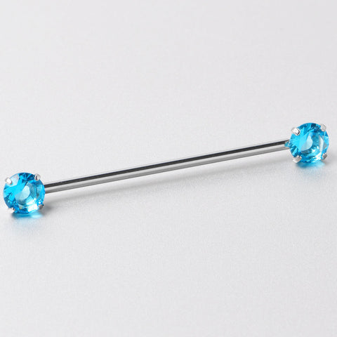 14 Gauge Aqua CZ Gem Threadless Industrial Barbell 38mm