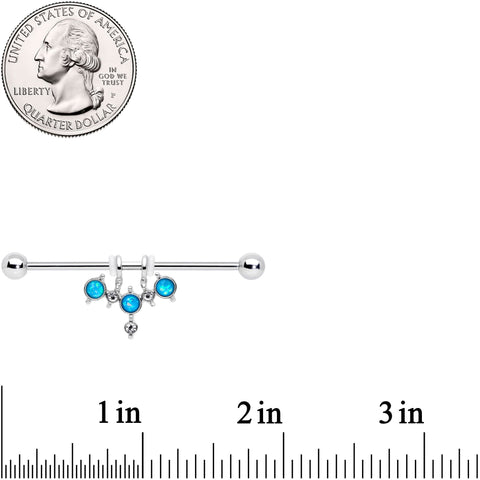 14 Gauge Aqua Faux Opal Triad Dangle Industrial Barbell 38mm