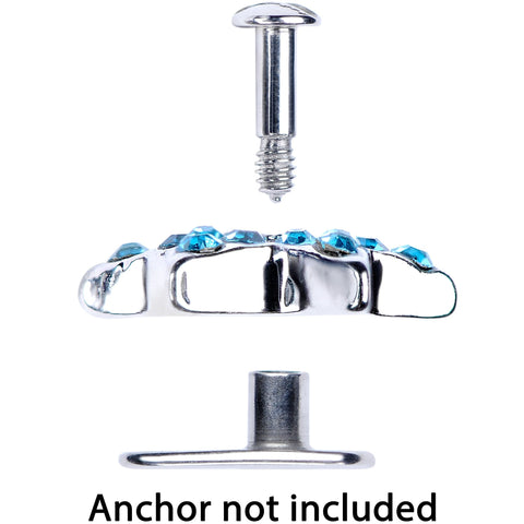Looking to add some flair to your surface piercing? This dermal top is bursting with flair, with a 10mm aqua gem encrusted six-pointed star as its focus. This star-shaped dermal top features a 14 gauge externally threaded dermal screw made with durable 316L surgical grade stainless steel, which screws into your surface anchor. Anchor not included.