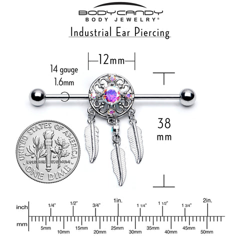 14 Gauge Aurora CZ Gem Dreamcatcher Dangle Industrial Barbell 38mm