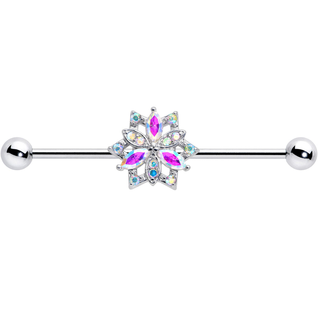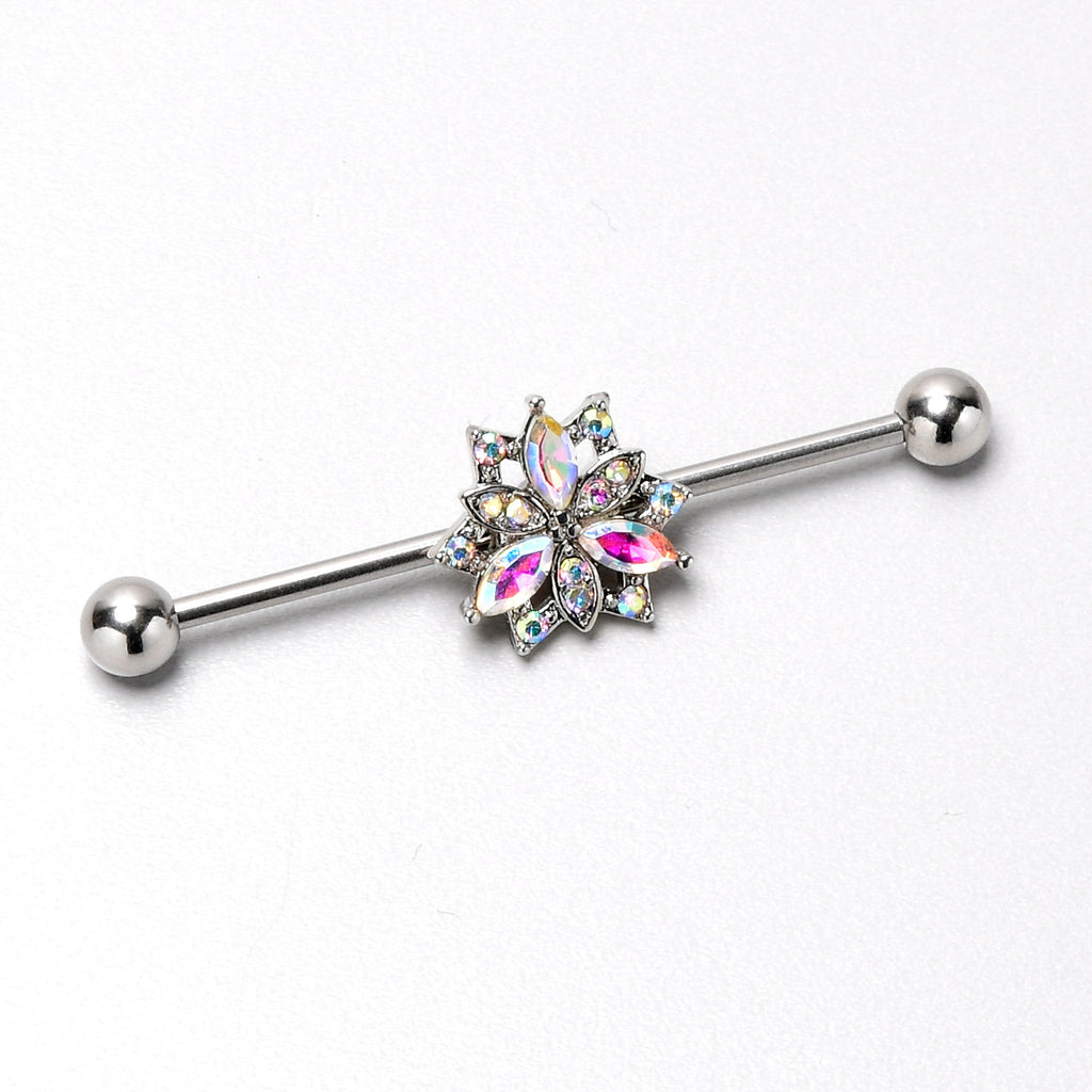 14 Gauge Aurora CZ Gem Snowflake Style Industrial Barbell 38mm