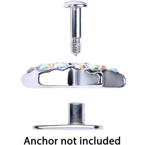 Looking to add some flair to your surface piercing? This dermal top is bursting with flair, with a 10mm aurora gem encrusted five-pointed star as its focus. This star-shaped dermal top features a 14 gauge externally threaded dermal screw made with durable 316L surgical grade stainless steel, which screws into your surface anchor. Anchor not included.