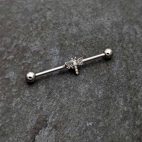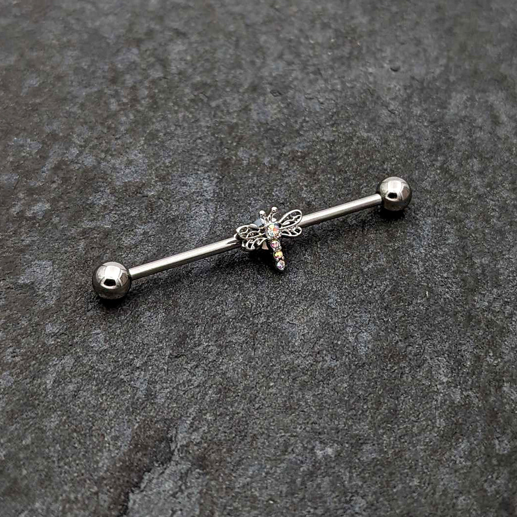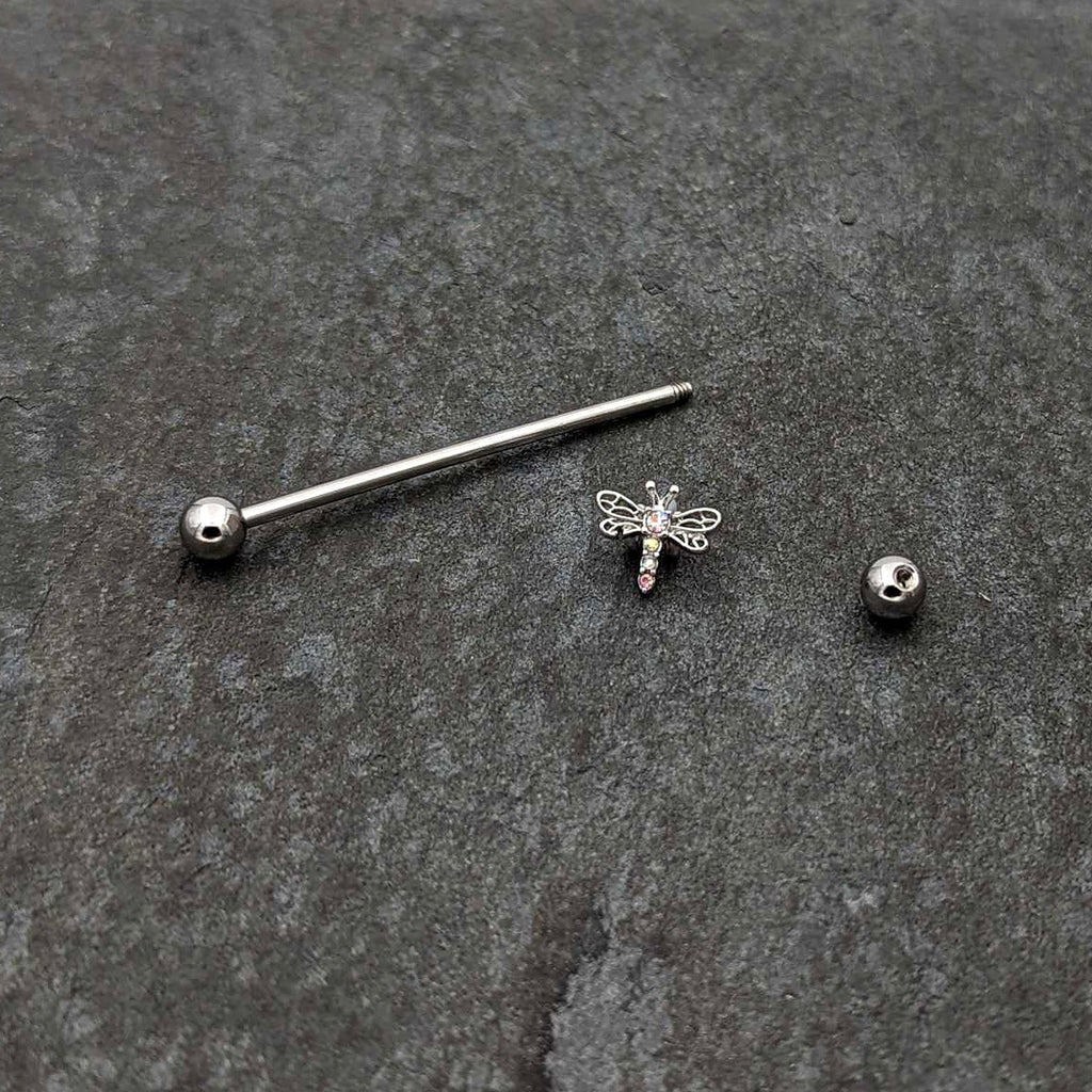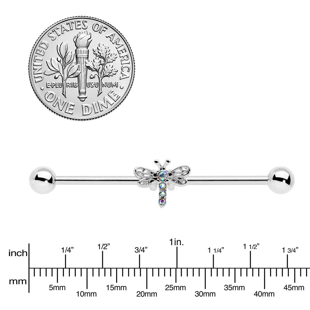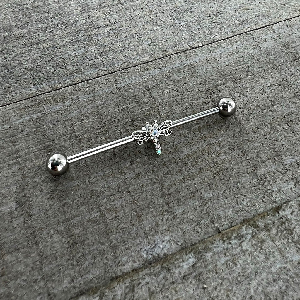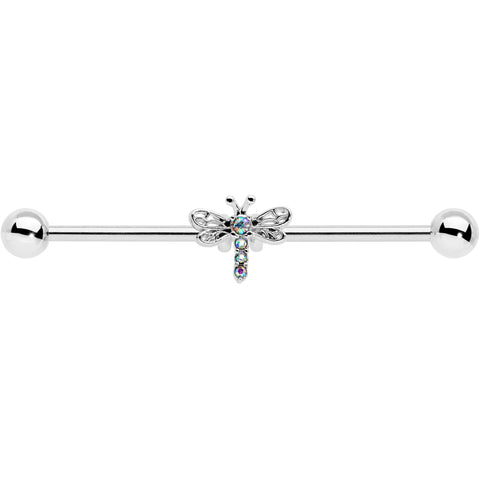 14 Gauge Aurora Gem Dragonfly Flying Industrial Barbell 38mm