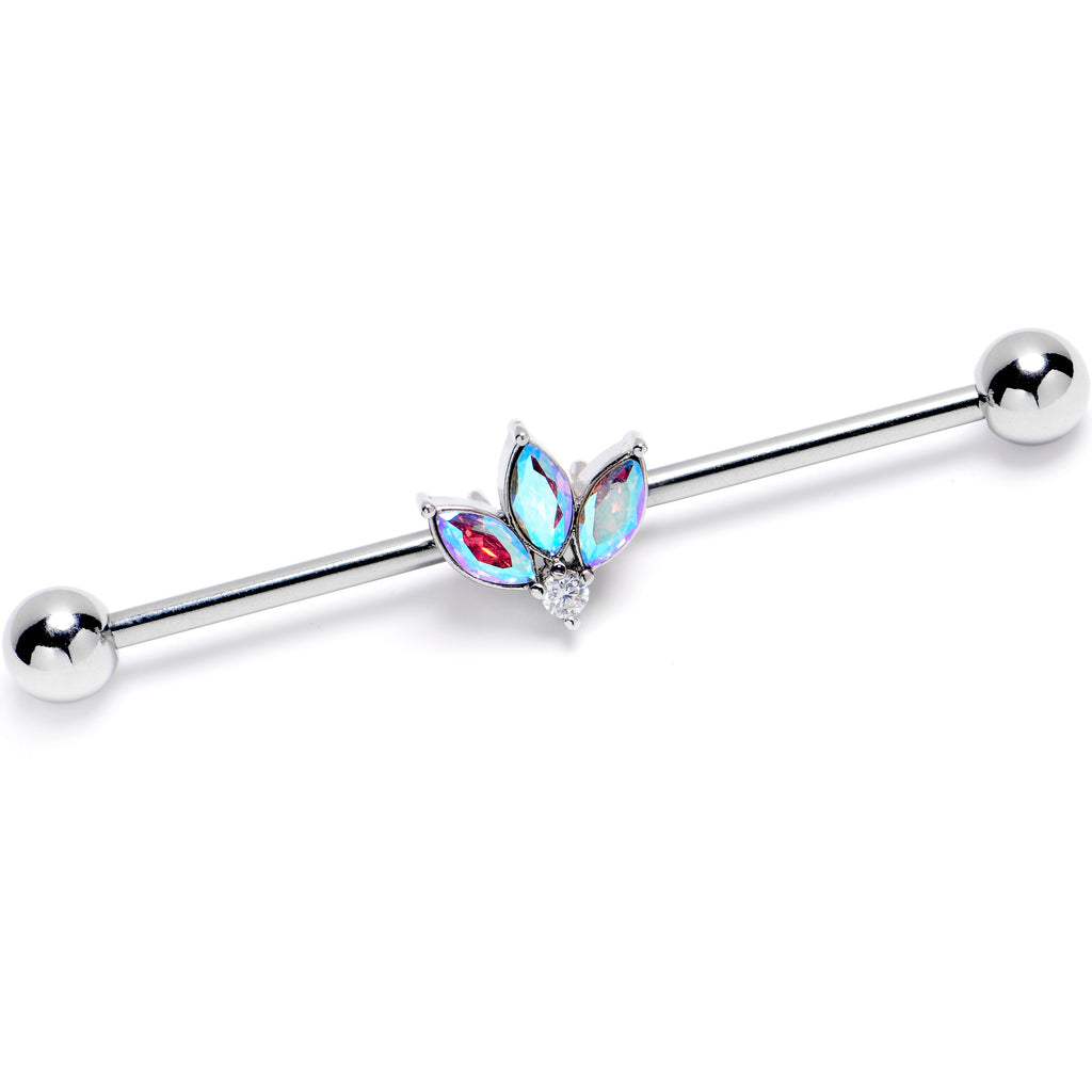 14 Gauge Aurora Gem Fashion Fan Mini Industrial Barbell 38mm