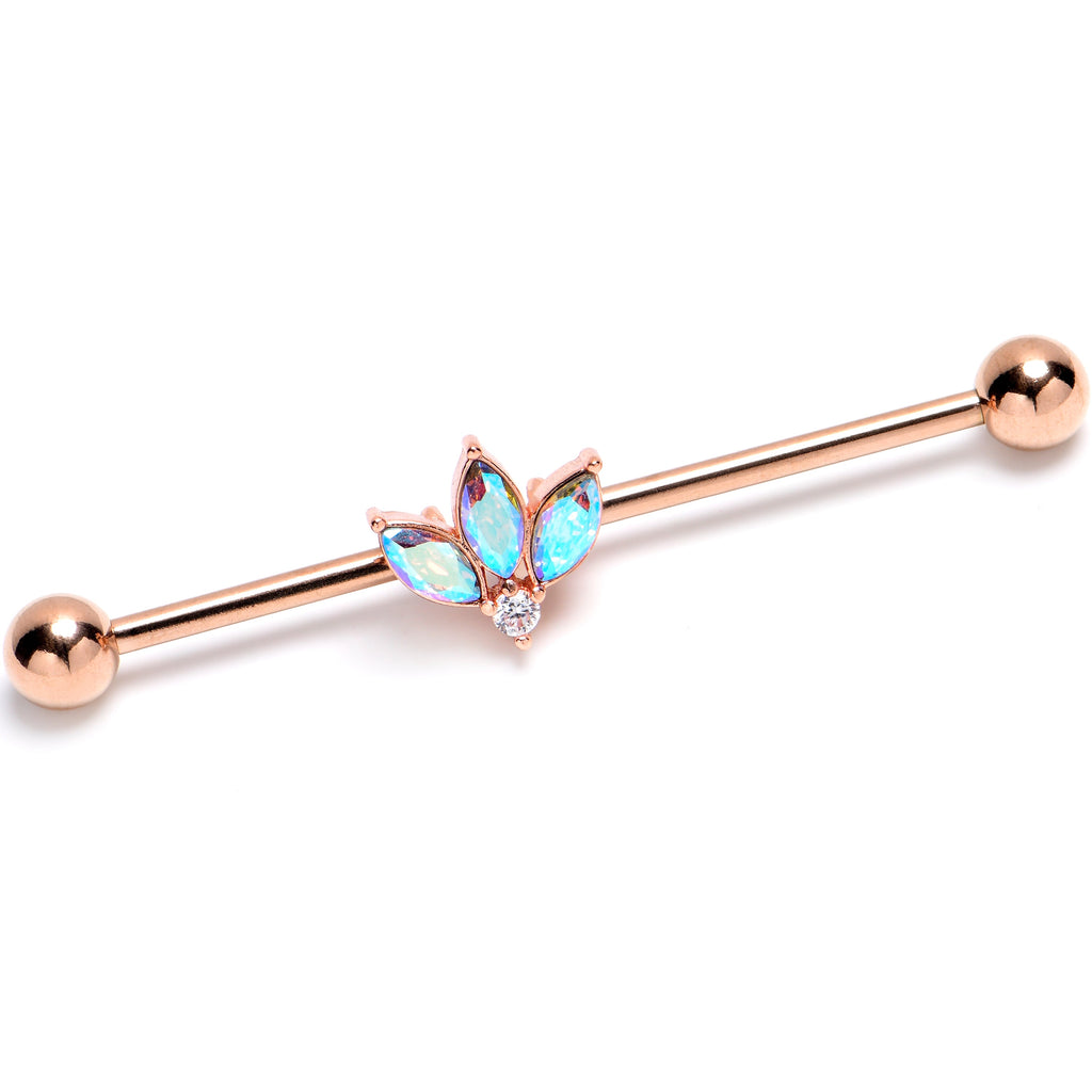14 Gauge Aurora Gem Rosy Tone Fashion Fan Mini Industrial Barbell 38mm