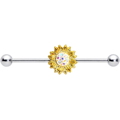 14 Gauge Aurora Gem Scintillating Sunflower Industrial Barbell 38mm