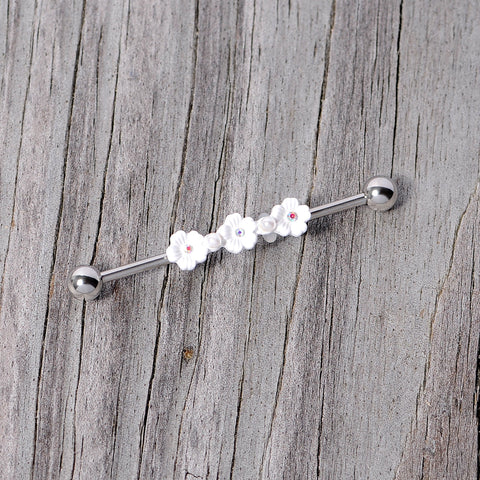 14 Gauge Aurora Gem White Flower Industrial Barbell 38mm
