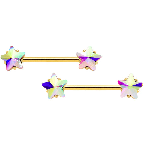 9/16" 1/2" Aurora Star Gem Gold Tone BCR Barbell Nipple Ring Set